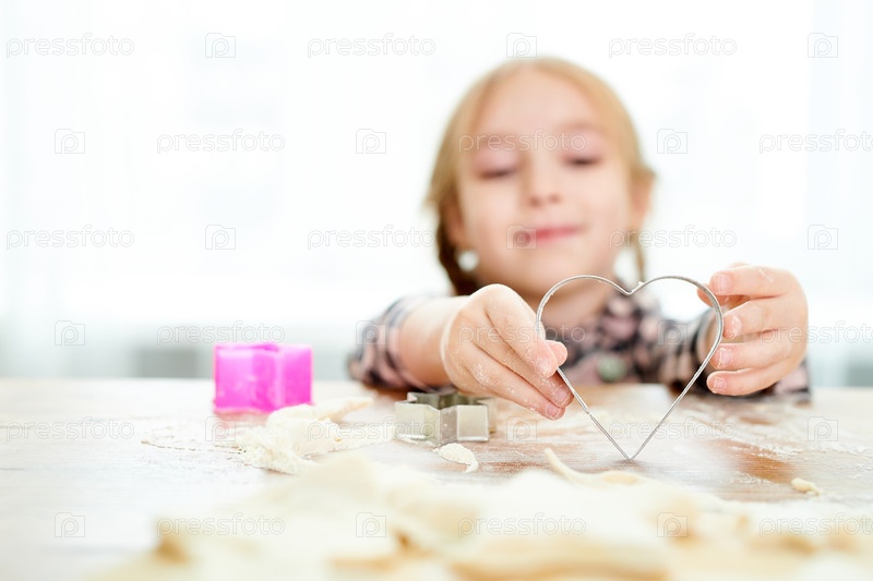 Маленькая девочка делает печенье