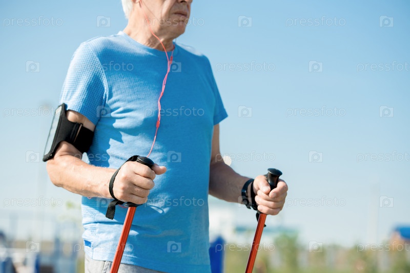Непризнанный пожилой мужчина ходит с поляками