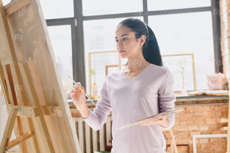 Красивая женщина рисует в художественной студии