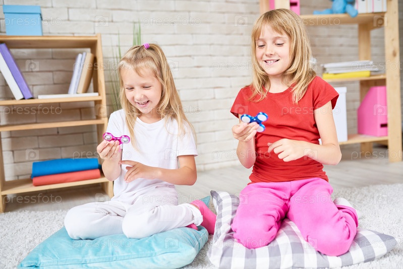 Маленькие сестры играют с популярными игрушками