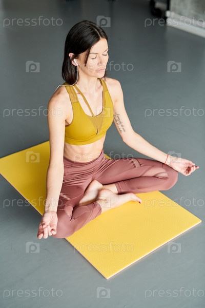 Молодая женщина медитирует в спортзале