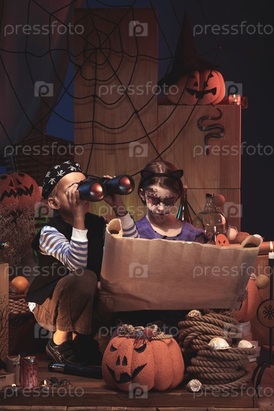 Дети играют на Хэллоуин