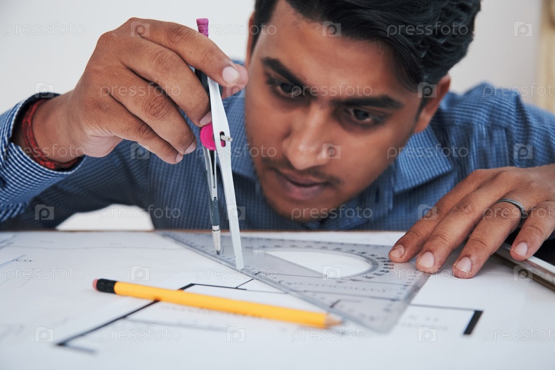 Концентрированный сотрудник с компасами