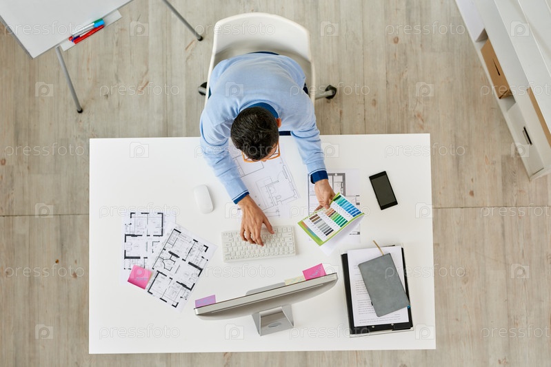 Дизайнер интерьера сосредоточен на работе