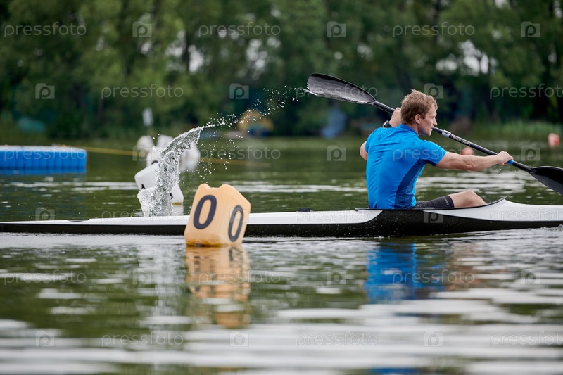 Человек гребёт на озере