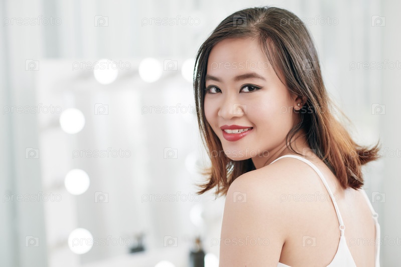 Красивая женщина, улыбающаяся на камеру