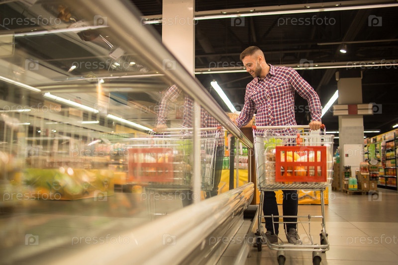 Красивый мужчина выбирает еду в супермаркете
