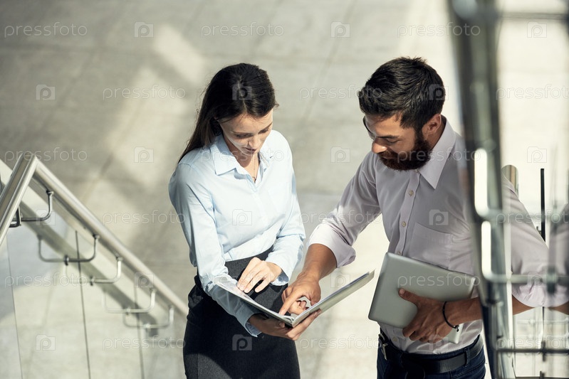 Мужчина и женщина с документами на ступеньках