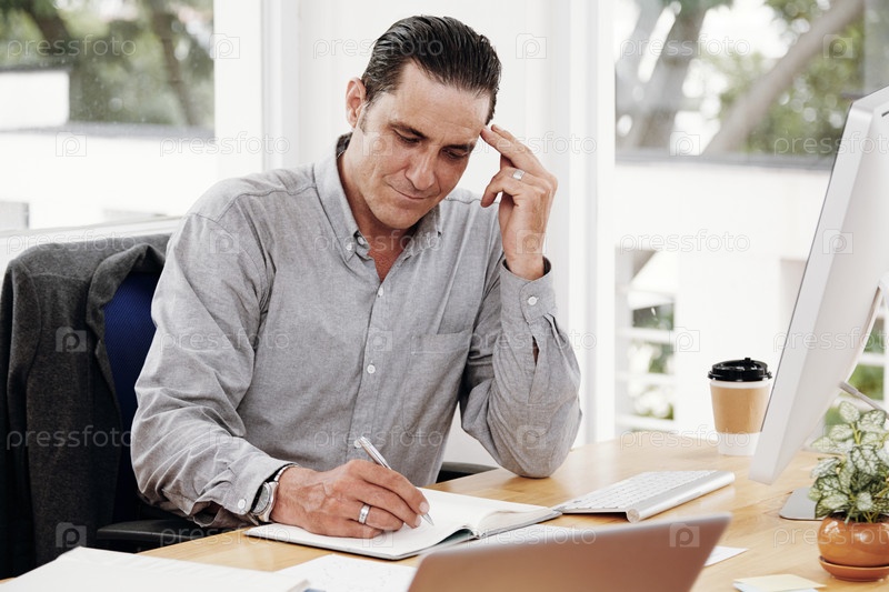 Улыбающийся предприниматель делает заметки