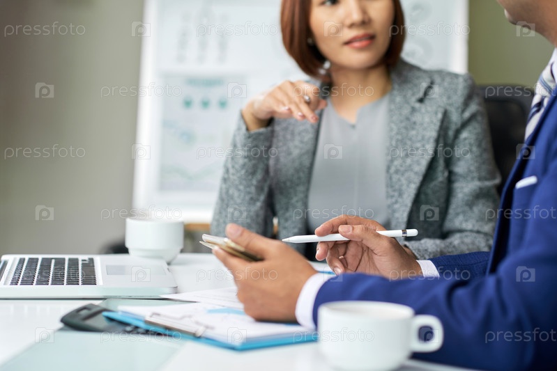 Бизнесмены, использующие смартфоны на встречах