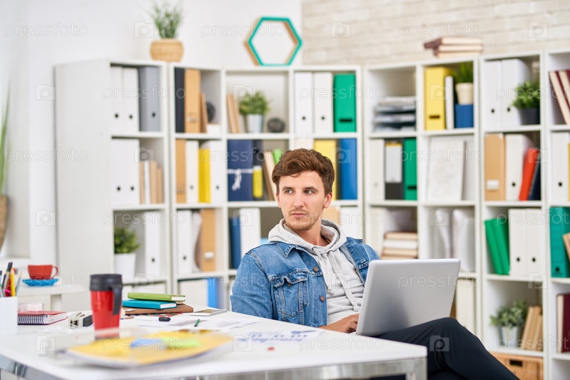 Молодой человек, работающий в офисе