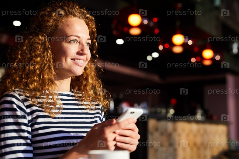 Взволнованная девушка читает смс от бойфренда