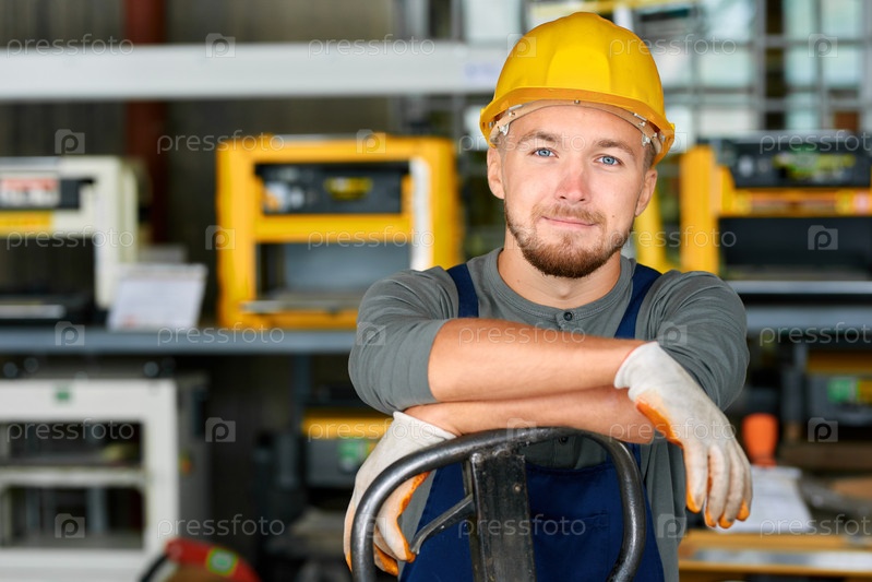 Молодой рабочий улыбается перед камерой