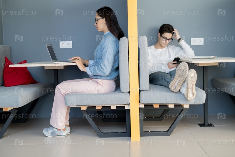 Рабочая леди и расслабляющийся парень в кафе