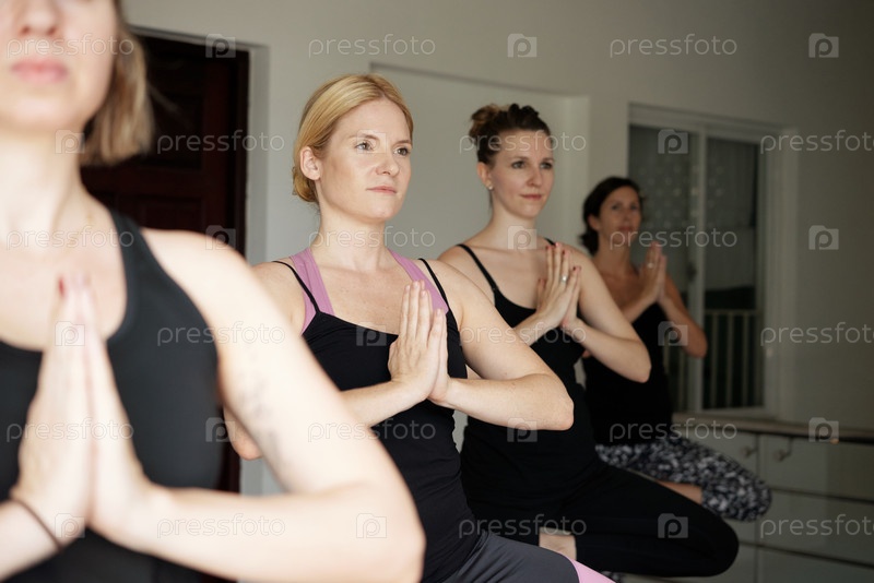 Женщины, балансирующие в позе йоги