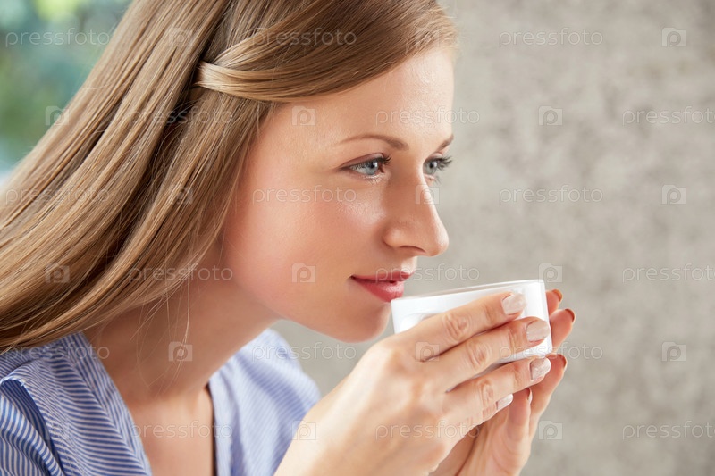 Женщина наслаждается чаем