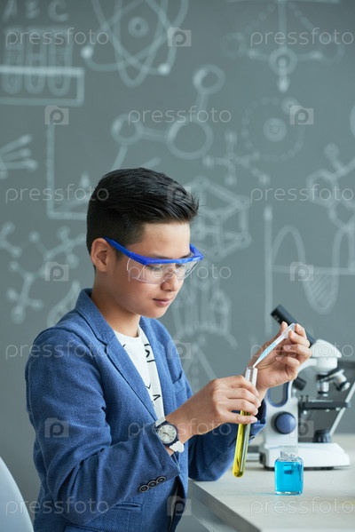 Мальчик, работающий в школьной лаборатории