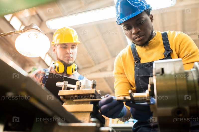 Инспектор оценивает работу инженера по ремонту на заводе