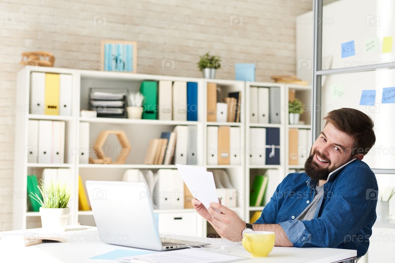 Бизнесмен, работающий в современном офисе Happy