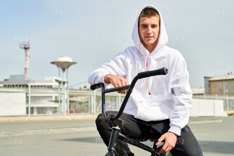Молодой человек позирует на велосипеде BMX