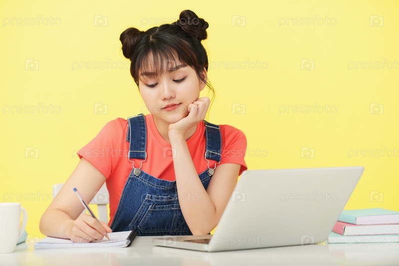 Стильная молодая этническая женщина, которая учится