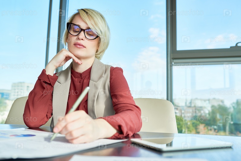 Красивая бизнесвуменка, сосредоточенная на работе