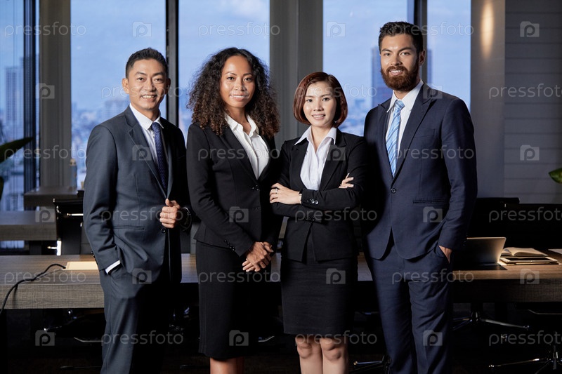 Группа юных улыбающихся бизнесменов