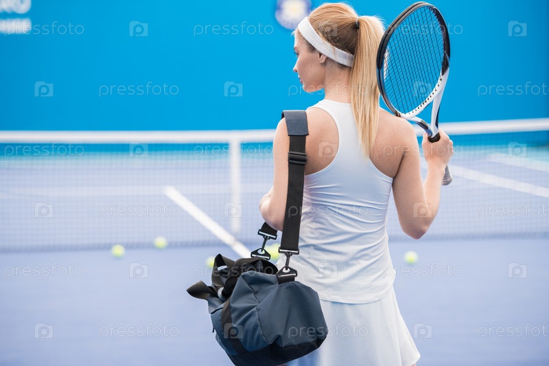 Прекрасный теннисный игрок Задним видом
