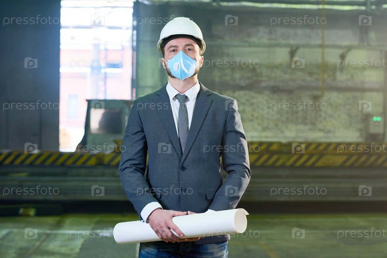 Бизнесмен позирует на заводе