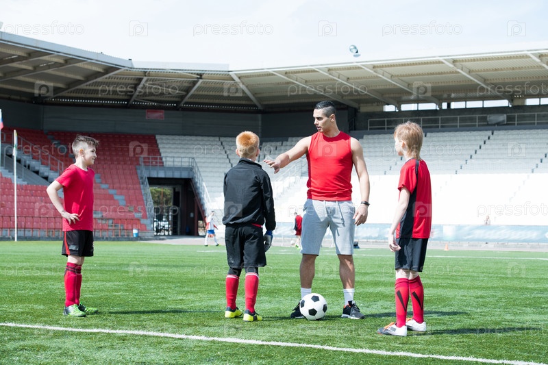 Футбольный тренер, обучающий детей