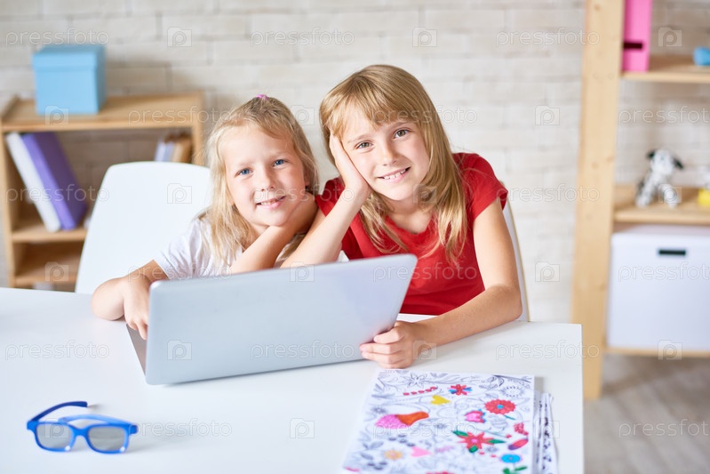 Милые маленькие сестры позируют для фотографии