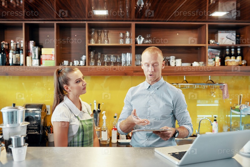 Владелец кафе и бариста на стойке