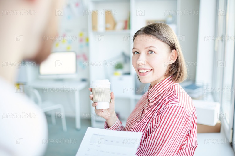 Красивая женщина разговаривает с коллегой