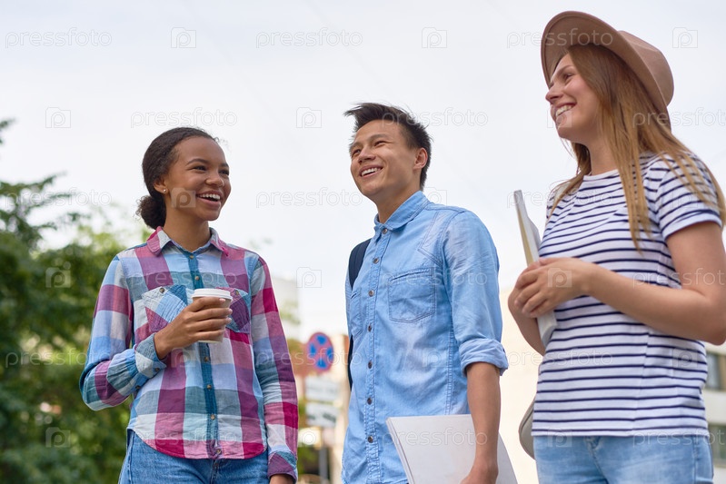 Веселые студенты наслаждаются отдыхом на свежем воздухе