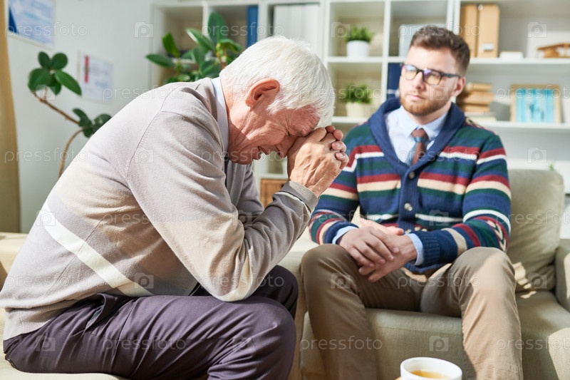 Эмоциональный пациент плачет во время сеанса психотерапии