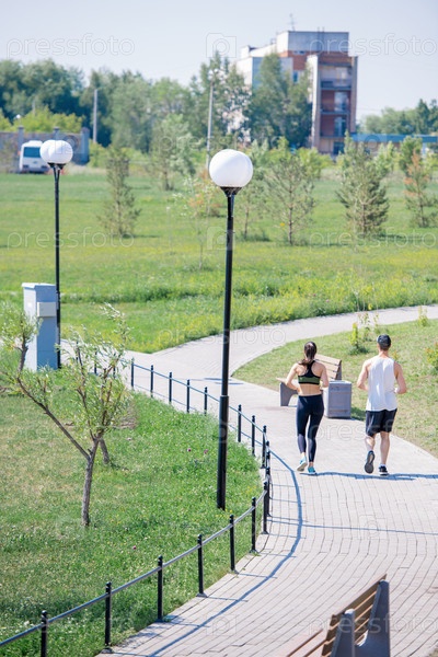 Бег в парке Задним видом Пара