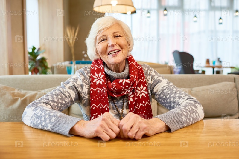 Счастливая бабушка, носящая рождественский шарф