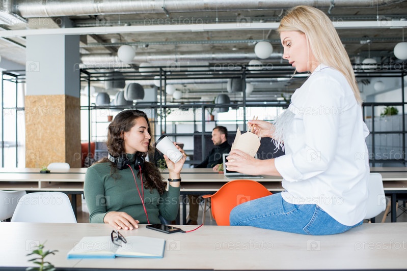 Современные коллеги едят на рабочем месте