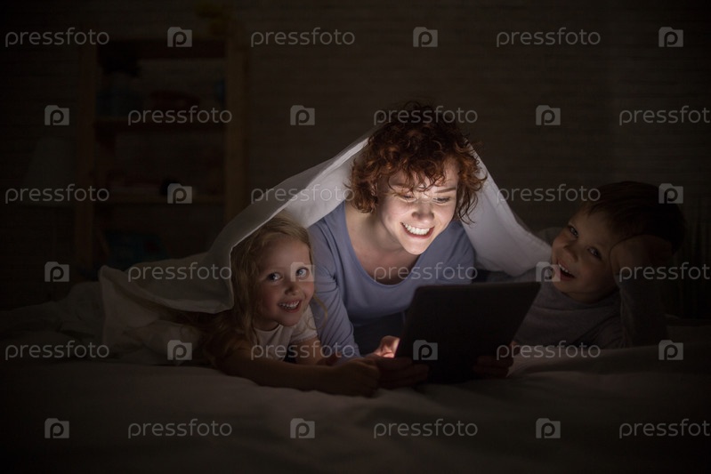 Счастливая семейная чтение по ночам