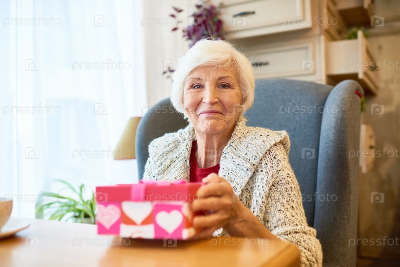 Пожилая женщина с коробкой для подарков