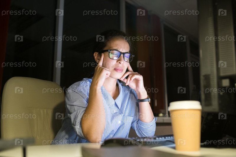 Стрессовая женщина, работающая по ночам