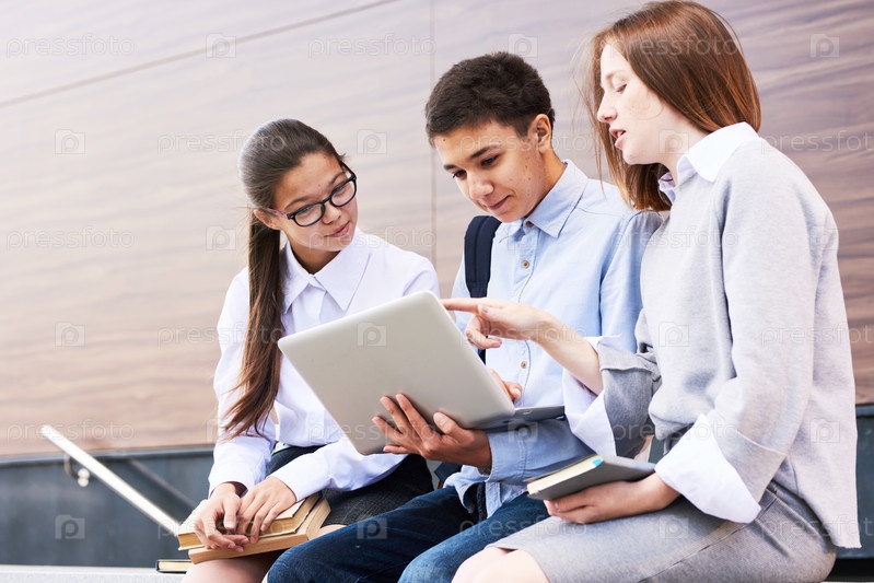 Студенты-подростки обсуждают проект