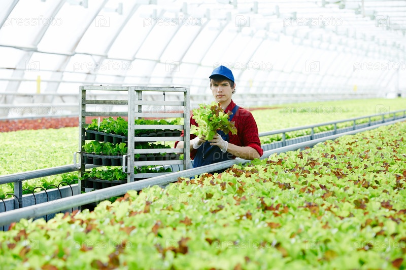 Работник в промышленной теплице
