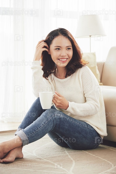 Красивая женщина наслаждается чашечкой кофе