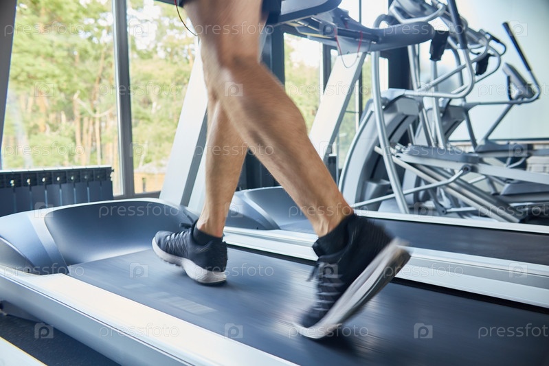 Непризнанный мужчина бежит на беговой дорожке