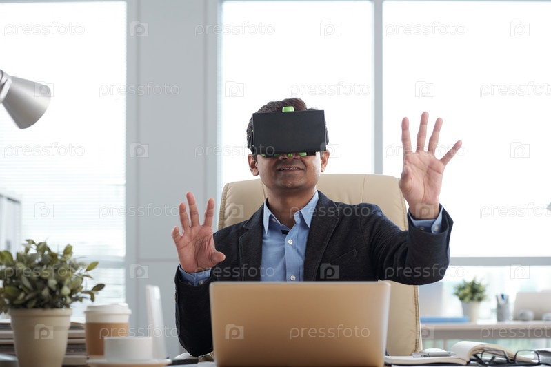 Бизнесмен в гарнитуре VR