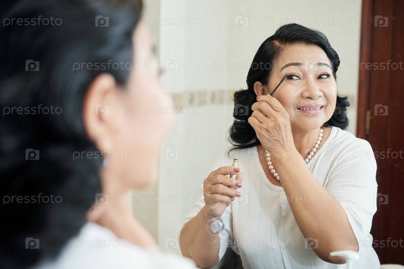 Старшая женщина, делающая макияж