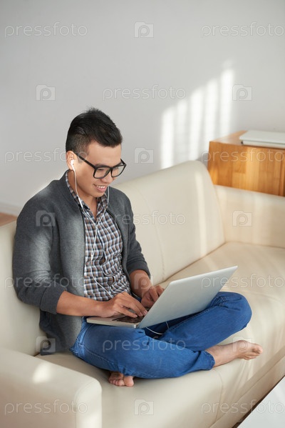 Молодой человек работает над ноутбуком