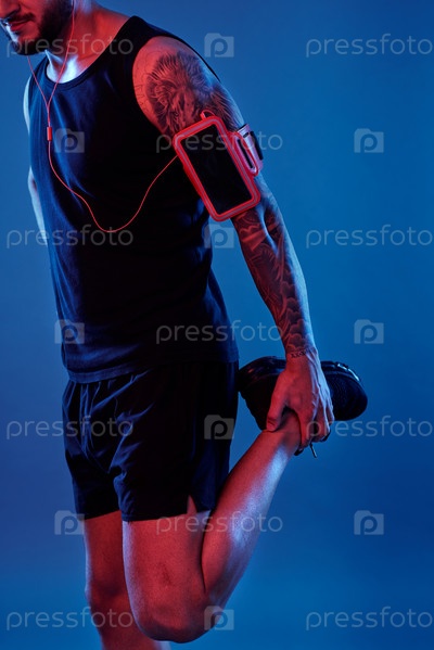 Урожай татуированный мужчина с телефоном в случае обучения