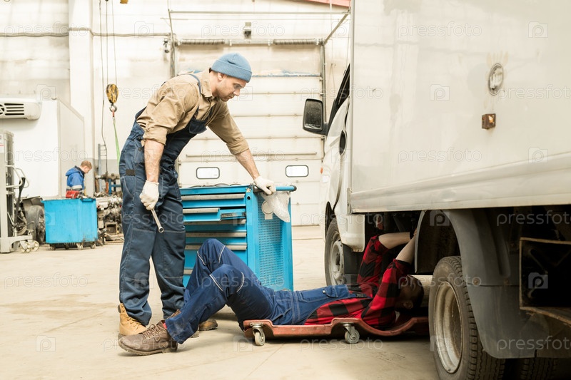 Ремонт грузовика в мастерской
